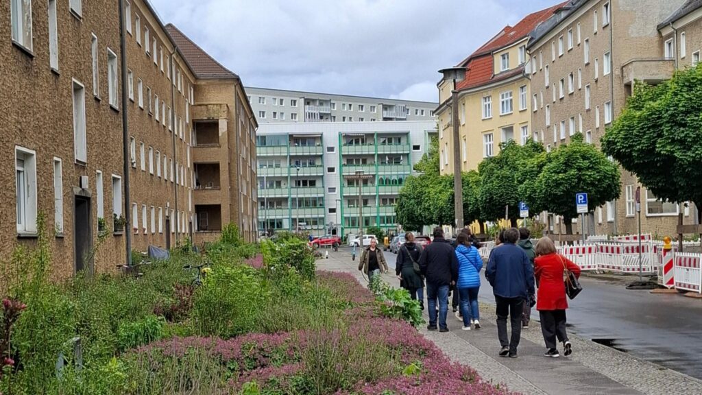 Hier wurde mit der Umnutzung der Karl-Lade-Straße schon in den 1970ern gezeigt, was Verkehrsberuhigung möglich macht: mehr Ruhe, mehr Bäume und Lebensqualität. Heute ist die grüne Straßenbahntrasse die Schlagader des Fennpfuhls. Hier leben besonders viele alte Menschen, die fußläufige Parks zu schätzen wissen, aber für die Einsamkeit im Alter oft ein Problem ist. Das Armutsrisiko ist hoch, gerade für die vielen Alleinerziehenden (oft Frauen) und ihre Kinder.